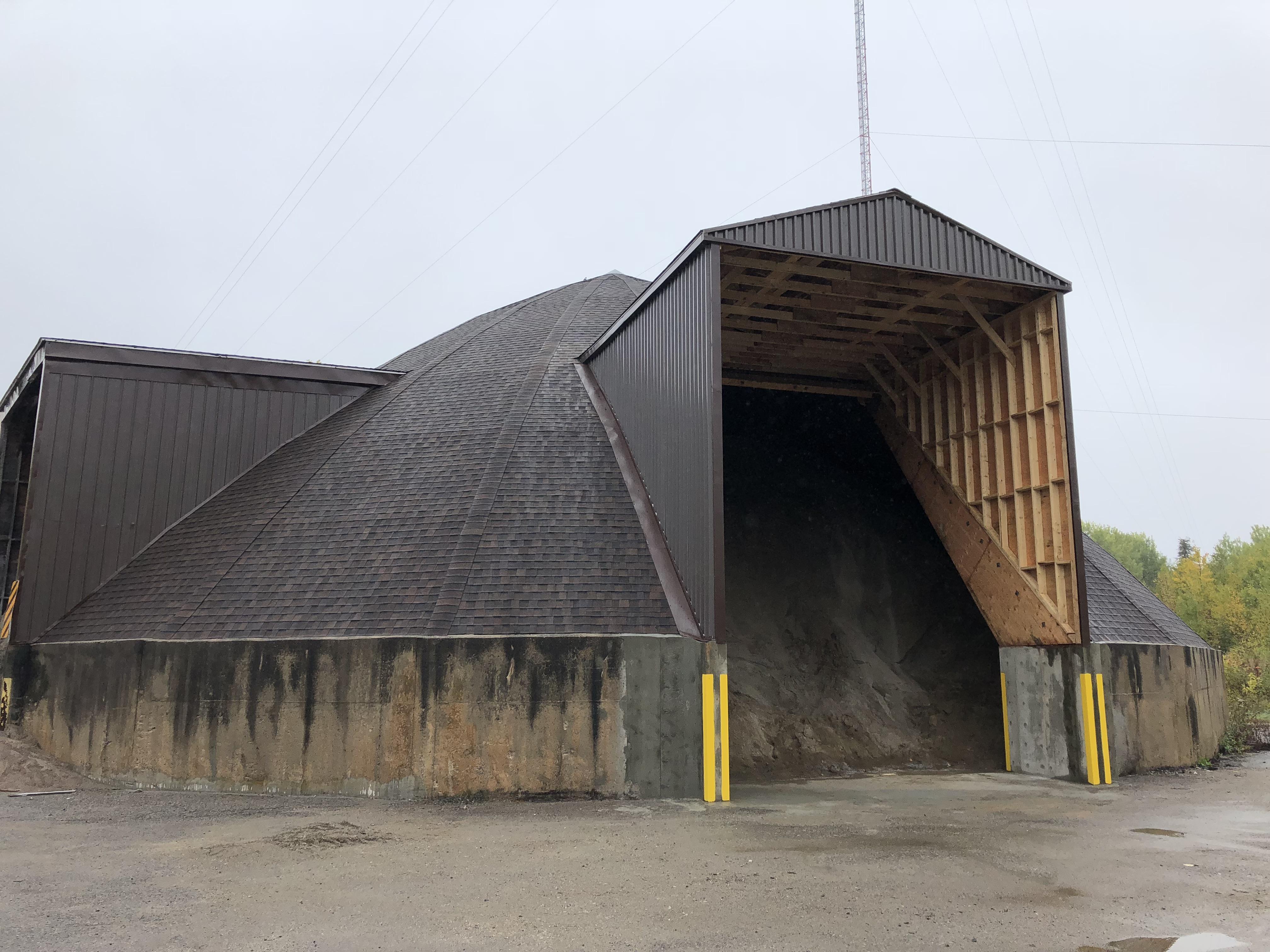 SSCC designs and manufactures and constructs Wood Storage Domes. These domes are the most widely used and most economical building for the permanent storage of sand, salt, and bulk fertilizer. Available in sizes ranging from 50 feet to 150 feet in diameter, and built on cast in place concrete foundations ranging in height from 6'-0 to 20'-0, these domes can store up to 25,000 tonnes of material.